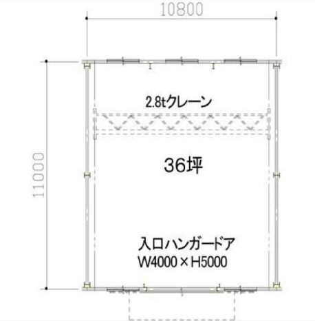 2.8tクレーン完備の36坪シンプル倉庫